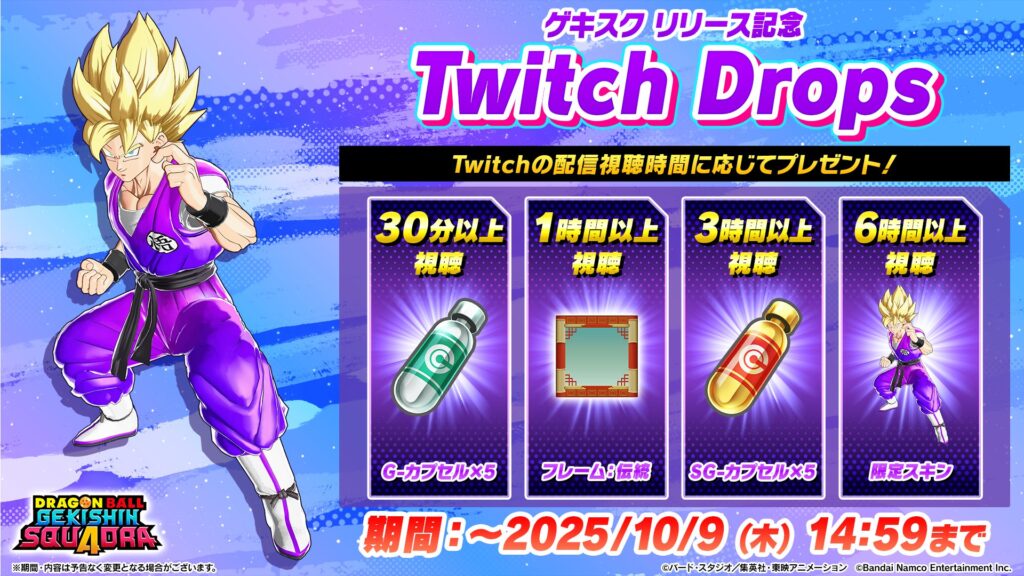| 2025年10月9日14時59分 | リリース記念 Twitch Drops (キャンペーン) |